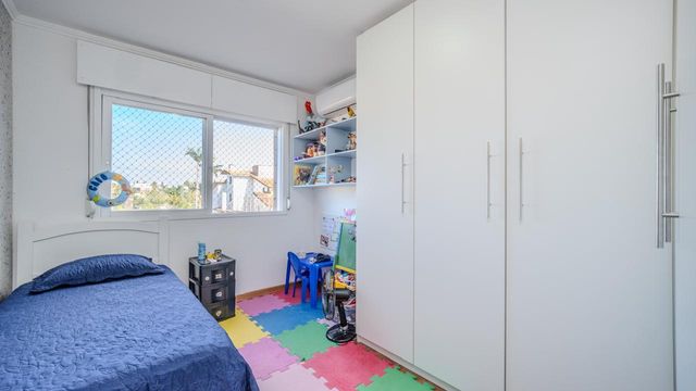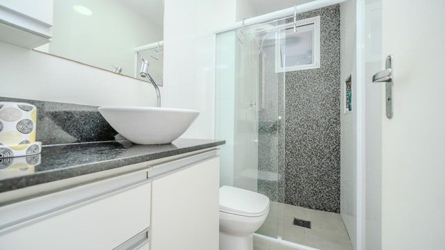 A cozinha é funcional e já possui armários planejados, oferecendo praticidade no dia a dia. O apartamento também dispõe de móveis sob medida no dormitório e no banheiro, otimizando os espaços com charme e organização.