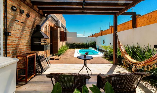 A casa possui ar-condicionado em todos os ambientes, garantindo conforto térmico em todas as estações. Conta também com piscina com aquecimento, ideal para aproveitar o espaço externo durante todo o ano.