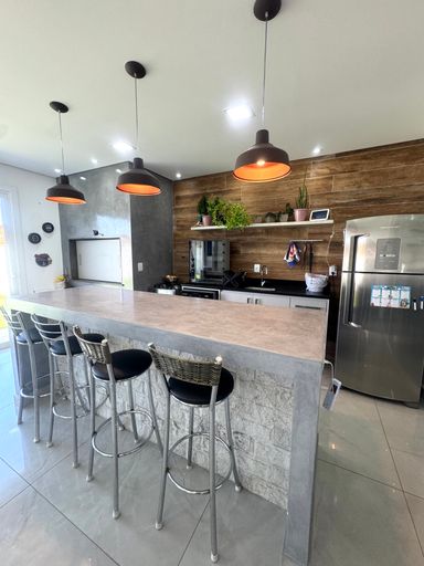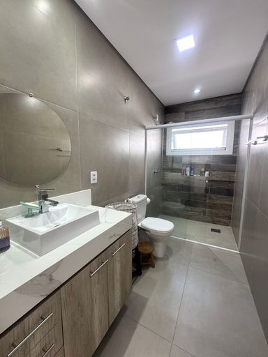 Possui quatro dormitórios, sendo um no andar térreo com banheiro, garantindo praticidade e conforto.