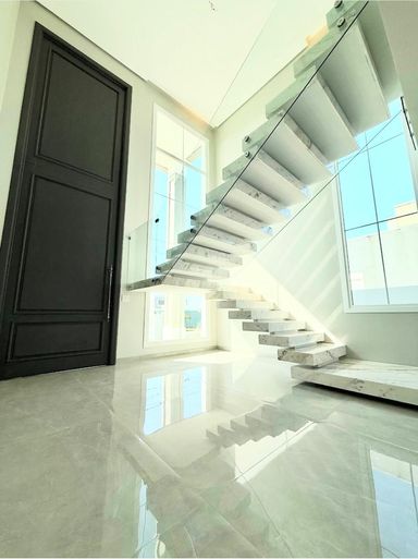 • Acabamentos premium: escada em mármore, esquadrias em PVC com vidros duplos e automação