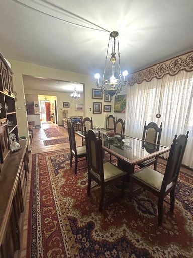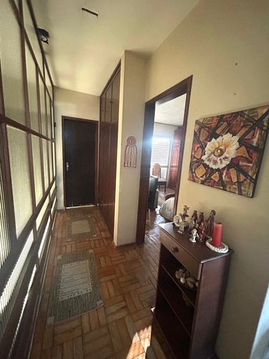 Casa ampla e funcional, com três dormitórios (uma suíte), quatro banheiros, duas salas de estar, sala de jantar, cozinha, lareira, varanda e lavanderia.
