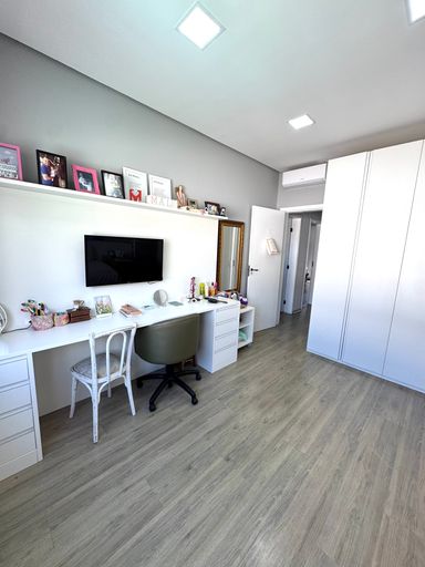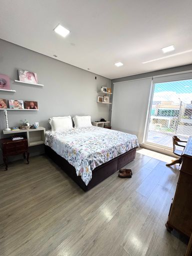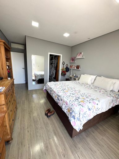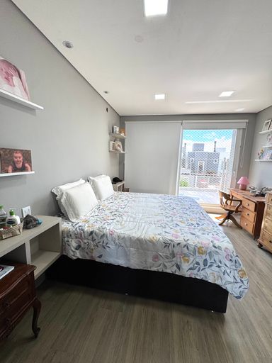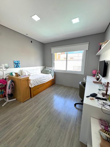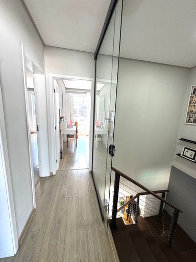 O imóvel é muito bem iluminado e acolhedor, distribuído em dois pavimentos. Na parte superior, conta com 3 dormitórios, sendo 1 suíte com closet, além de banheiro social que atende os outros quartos.