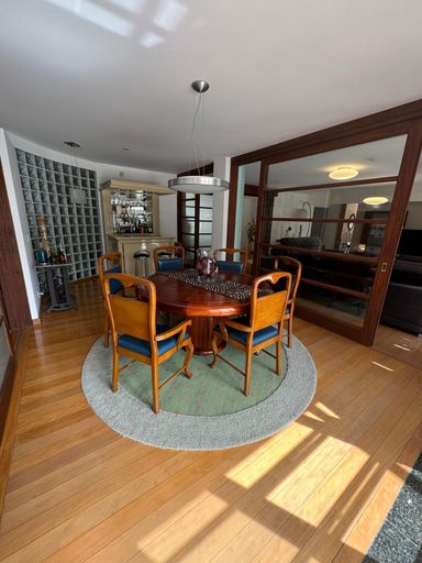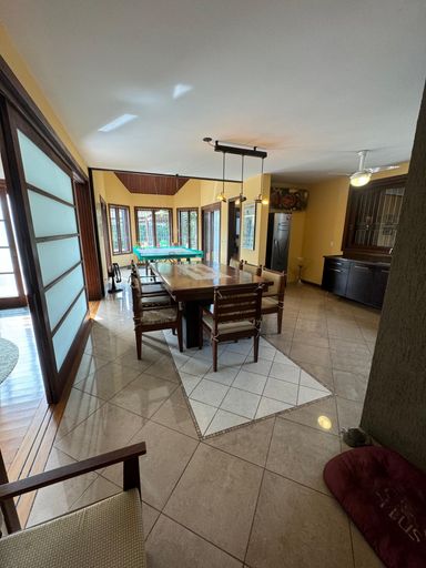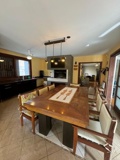 São 5 dormitórios, sendo 2 suítes, uma delas com closet, além de 6 banheiros, todos pensados para oferecer conforto e praticidade no dia a dia. A área social é um convite para receber bem: sala de estar com lareira, sala de jantar, cozinha ampla, copa, despensa e dependência completa de empregada.